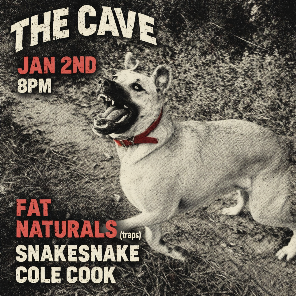 January 2 @ 8:00 pm Fat Naturals | Snakesnake | Cole Cook The Cave NC, United States Suggested Donation $10 Fat NaturalsSnakesnakeCole Cook