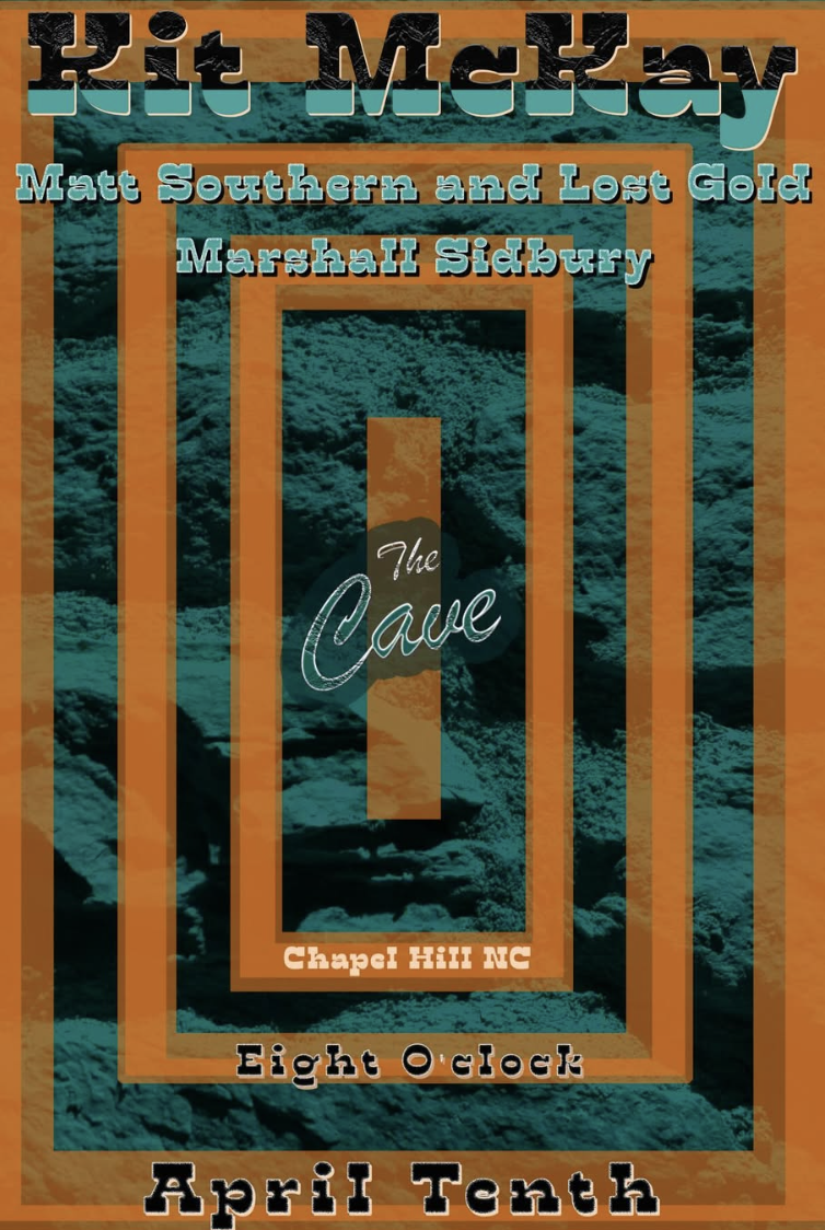 April 10 @ 9:00 pm Kit McKay | Matt Southern & Lost Gold | Marshall Sidbury The Cave NC, United States Suggested Donation $10 Kit McKayMatt Southern & Lost GoldMarshall Sidbury